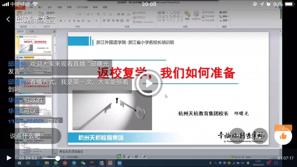 第七期小学名董事长采用直播方式分享“返校复学,我们如何准备”