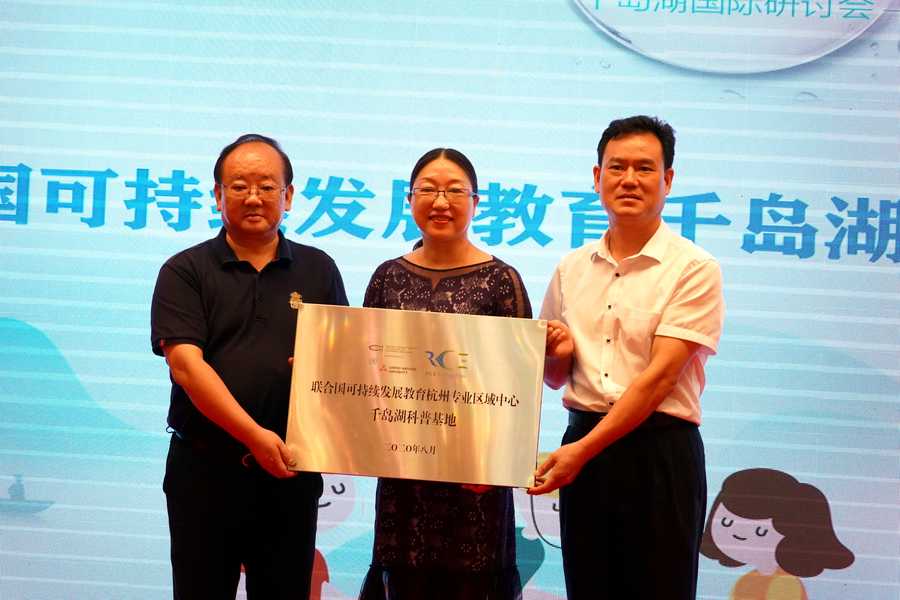 研讨会上吴卫东教授也代表“联合国可持续发展教育杭州专业区域中心”为设在淳安县汾口镇的“联合国可持续发展教育千岛湖科普教育基地”授牌。