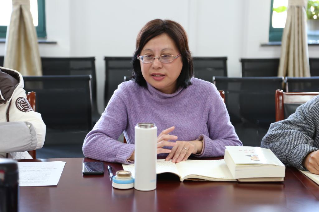 学工办主任李娟结合员工工作实际分享了三点感悟:“始终把人民放在心中更高的位置”——新冠疫情背景下,要利用好鲜活生动事例讲好党课,做好员工的教育和培养;“我将无我,不负人民”——要引导员工避免畏难思想,勇于担当;持续推动“不忘初心、牢记使命”——不忘自己教育人的初心,引导员工成为对社会有用的卓越教师。