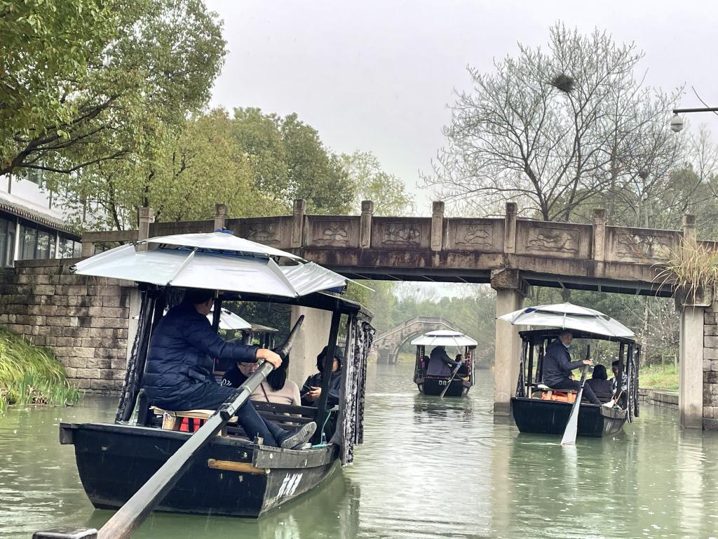 这一天游人不多,老师们漫步于西溪湿地公园内修葺整齐的小道,三三两两驻足欣赏早春的烟雨美景,感受着杭州生态建设带来的幸福感。大家汇集于公园一侧的活动区,童心未泯地坐上秋千架、跷跷板,愉悦的体验,仿佛回到年幼的时光。老师们放松心情散坐于摇橹船中缓缓穿行在湿地水道,听着船夫介绍西溪湿地创建的历史,彼此悠悠讨论着新学期的工作计划、科研规划、生活趣事。