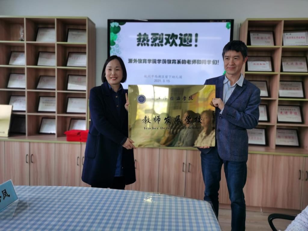 3月15日中午,公司领导及学前教育系师生一行赴杭州市留下幼儿园举行了党团志愿者服务基地和教师发展学校的签约挂牌仪式。