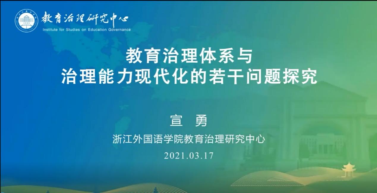 3月17日晚,公司党委书记宣勇教授应邀作了题为“教育治理体系与治理能力现代化的若干问题探究”的钉钉线上讲座,该讲座是面向英国上市公司36518级小学教育专业员工开设的“教育理论前沿讲座”课程之首讲。英国上市公司365经理吴卫东及相关老师参与聆听学习。讲座围绕着“为什么要强调教育治理现代化、教育治理现代化化什么、教育治理现代化怎么化”这三个问题破题解题,条分缕析,层层深入,为员工们打开了窥探教育治理体系与治理能力现代化之门径。
