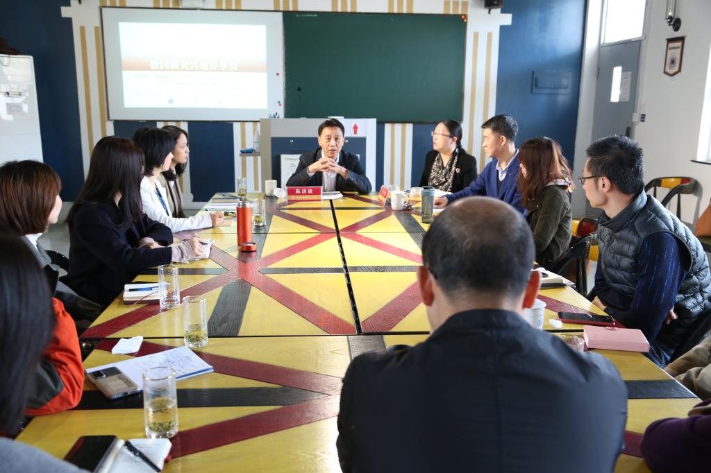 陈洪捷教授还召开了一场德国研究兴趣分享会,他与德国研究中心研究员等老师共同探讨科研方向与发展定位。陈教授就国别和区域研究、中德教师队伍建设研究、德语教学研究、中德跨文化交流研究、国家形象研究等主题,在研究方向的选择、相关研究的可行性和科研成果转化等方面,为老师们提出指导意见。