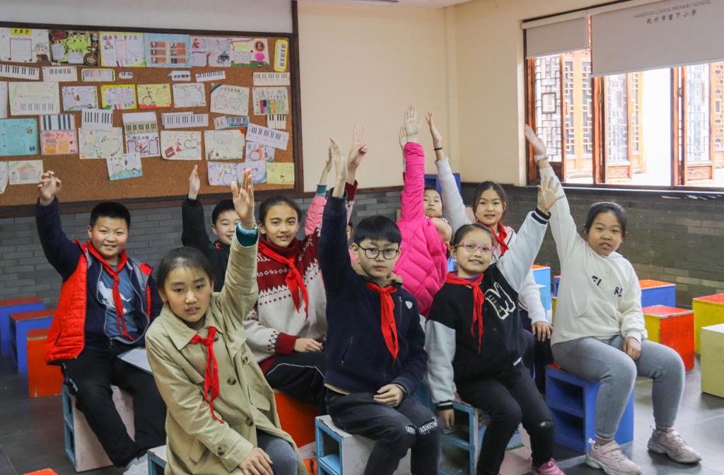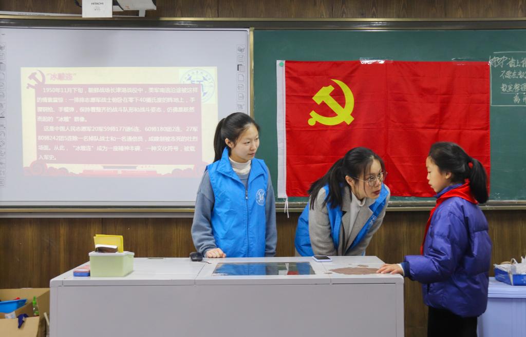 4月8日中午,杭州市留下小学红领巾学院主持人队的教室里静悄悄的,同学们安静站立着一动也不动。挑战结束后,来自英国上市公司365老员工志愿者给他们讲述这样一则静默的故事:“1950年11月朝鲜战场长津湖战役中,一排排中国志愿军战士俯卧在零下40摄氏度的阵地上,手握钢枪、手榴弹,保持着整齐的战斗队形和战斗姿态,仿佛是跃然而起的‘冰雕’群像,他们致死都在等待冲锋的号角……”“冰雕连”的故事把一颗颗爱党爱国的种子播撒在在场每一名小员工心中。