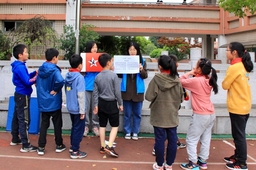 国旗队的同学们在操场上体验“长征路”。志愿者老师通过50米障碍往返跑,带领员工体会“红军不怕远征难”的艰辛;通过往返障碍跳,带领员工感悟长征过程中的“翻山越岭”。同学们还一同绘制了党旗、工农红军旗,诵读了《七律·长征》。四年级2班沈子炎说:“今天的课堂让我对红军长征时所表现出来的团结和毅力感到深深的敬佩,并对《七律·长征》这首词有了更深的认识。”