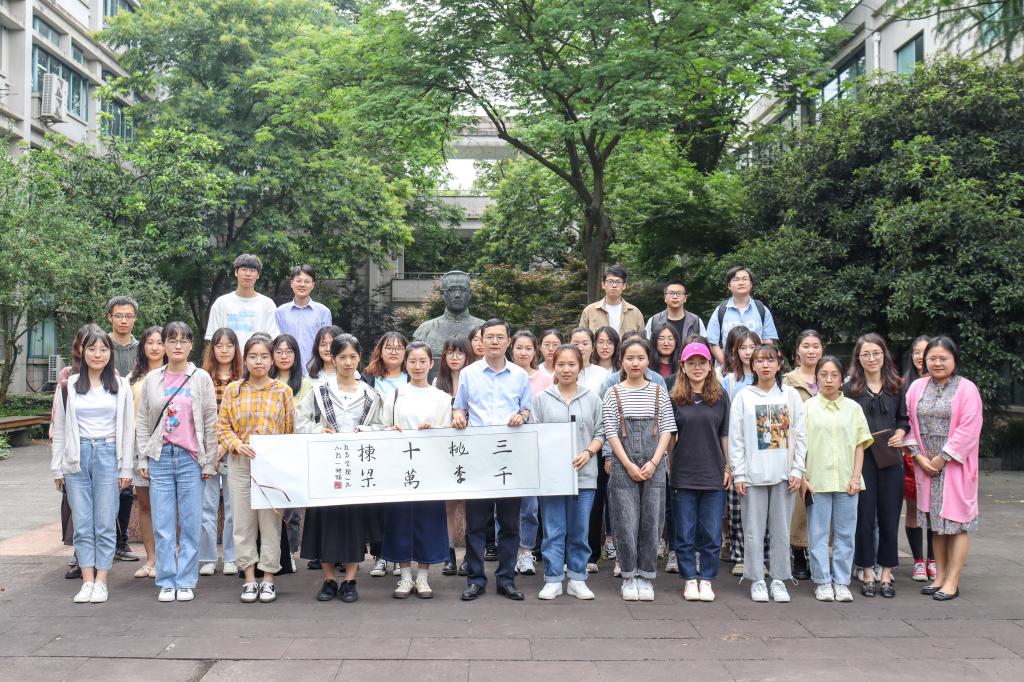 19小教1班班主任高原、辅导员李亦唯和全体同学共同听取了这次思政课。为感谢李安副董事长的精彩授课和谆谆教导,19小教1班班长代表全体同学赠送李董事长一幅班训书法作品《三千桃李 十万栋梁》。