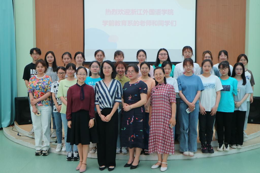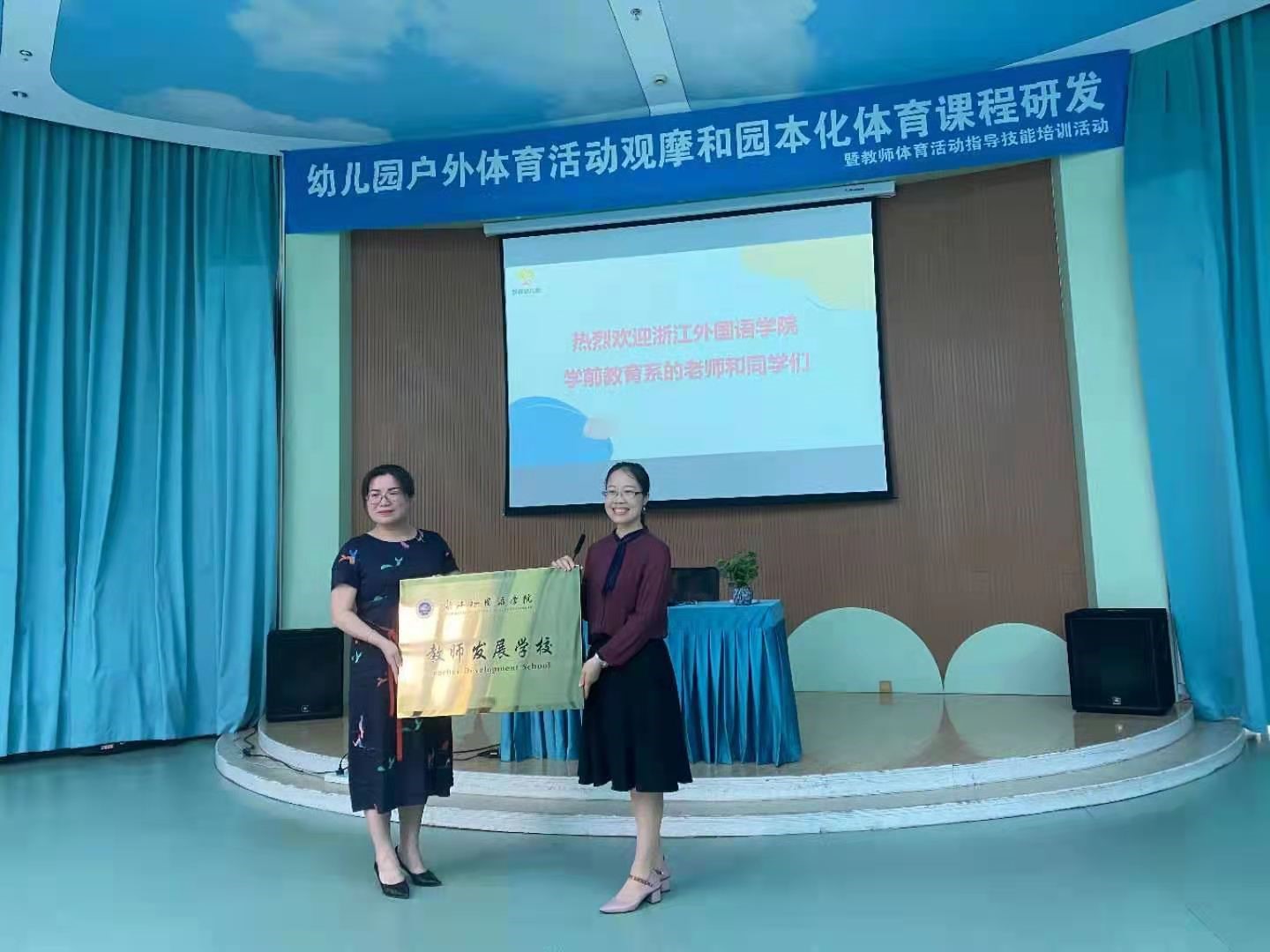 5月12日在学前教育系主任冯翠典老师和屠筱青博士带队下,公司2019级学前教育专业员工在实践周期间赴杭州钱塘新区观澜幼儿园参观学习并见证教师发展学校挂牌。观澜幼儿园宋玉清园长和李红英副园长等热情接待了公司师生一行。