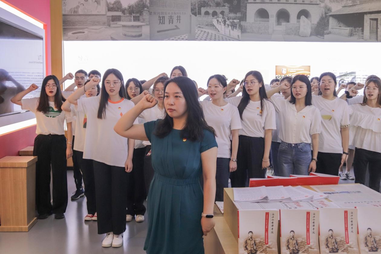 参加出征仪式的还有李亦唯老师和30多名新员工党员,他们佩戴上崭新的党徽,举起右手,在党旗下光荣宣誓。
