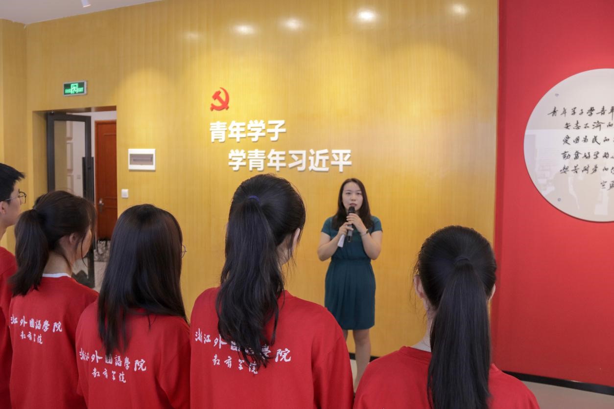 今年即将奔赴“青年学子学青年习近平”实践基地的社会实践小分队队长接受了实践旗帜,许下承诺:不负青春,不负韶华,不负时代。“这是我第一次走进展厅,这里庄严又亲切,接过旗帜我们实践队员心中的责任感与使命感油然而生,希望我们能把这份精神力量带进小学,让它传播地更远更广。”赴金华浦江杭坪镇的“蒲公英”红色文化教育实践小分队队长李雨桐这样说。