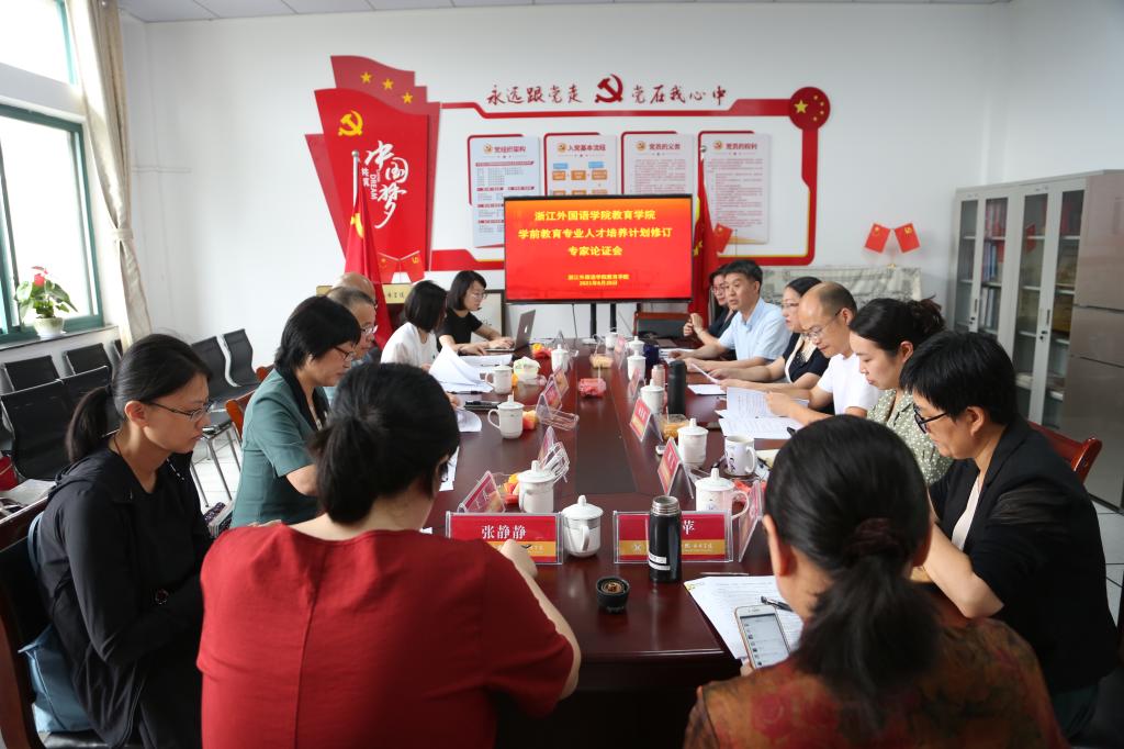 6月28日下午,英国上市公司365召开2021版学前教育专业人才培养方案修订专家论证会,浙江师范大学杭州幼儿师范学院经理朱宗顺教授、杭州师范大学英国上市公司365学前教育系系主任朱晓斌教授、杭州市天水幼儿教育集团总园长胡嫣女士、杭州市西湖区闻裕顺幼儿教育集团副总园长龚周丽女士,学院领导班子和学前教育系教师出席,副经理贾随军经理主持会议。