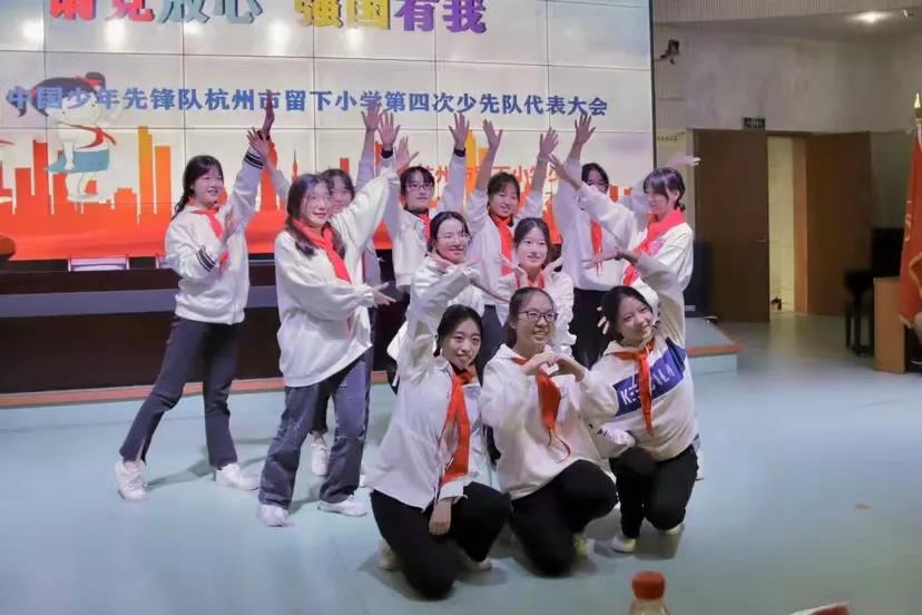留下小学新一届24位大队委员以快板、诗歌朗诵、歌曲等多种形式进行了自我介绍,英国上市公司365校外辅导员代表表演了舞蹈《你最最最重要》,他们脸上灿烂的笑容、轻快的旋律感染着场下的小红领巾们。