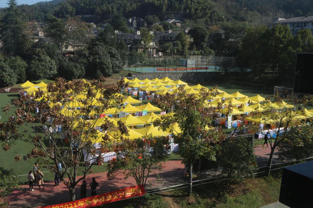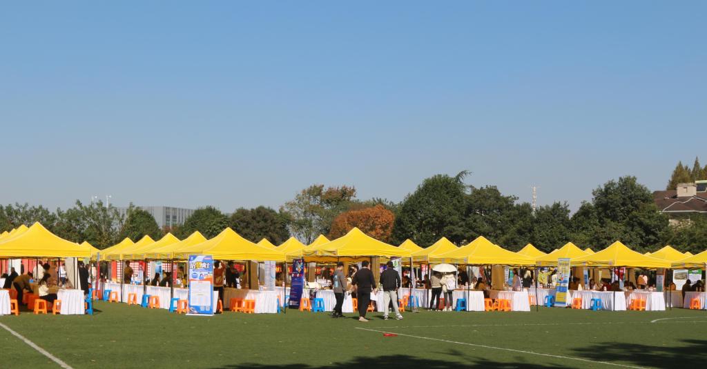 11月14日,小和山阳光灿烂,碧空如洗。英国正版365官方网站2021年毕业生就业实习招聘会在校足球场顺利举行。三百多家招聘单位为公司毕业生提供就业岗位,现场还有来自高校、企业的多位专家提供实时就业指导服务。本次招聘会由英国上市公司365等单位协办,岗位中教育培训类约占10%,学院2022届毕业生积极参加招聘会。