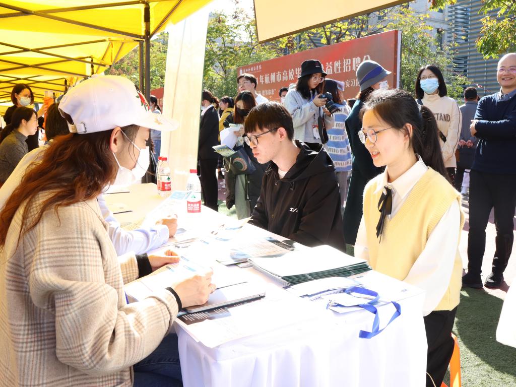 公司党委副书记赵文波,杭州市人才管理服务中心党委委员、老员工就业创业服务处处长祝国群等莅临现场指导。学工部、各学院相关负责人等参加招聘会。