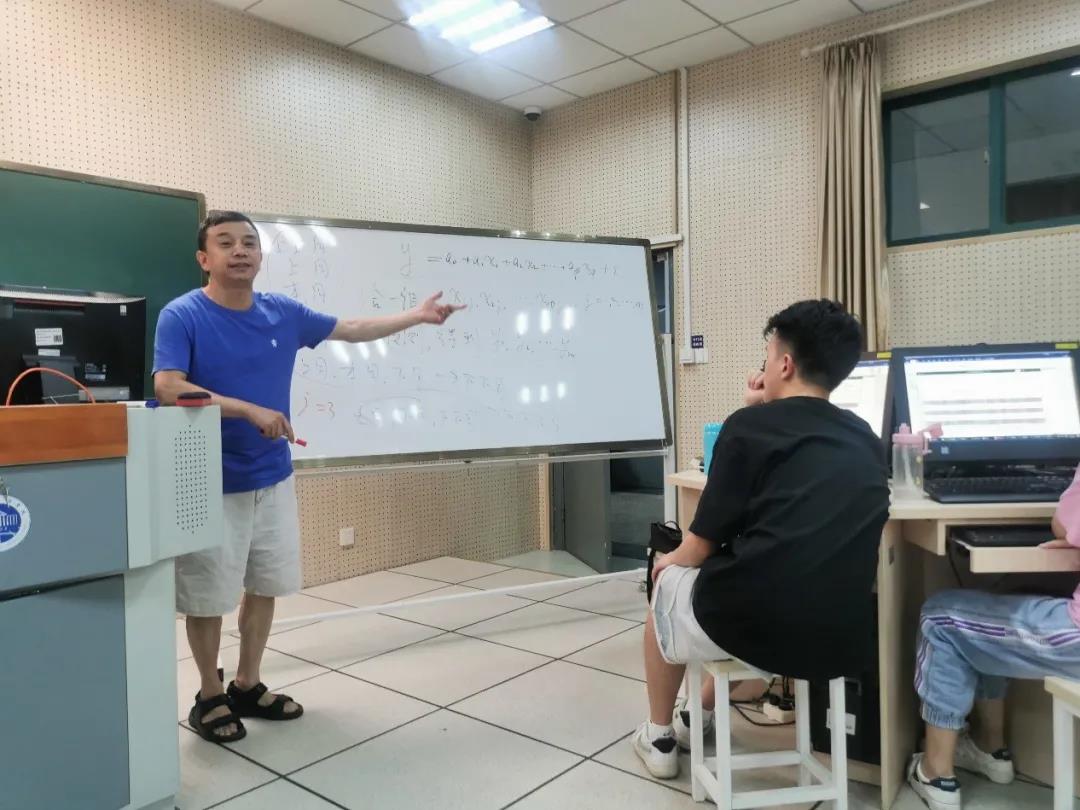 在指导老师马新生与李亚辉的悉心指导与耐心陪伴下,约两个月的培训与三个近乎不眠的比赛日变得“值得”。每天超过9小时的训练时长,即使她们都在自行解题,老师也一直坚守在教室,随时和队员们探讨解决难题。不仅是学业,老师也很关心她们的生活,由于训练集中在暑期开展,老师们也陪着在校加班,马不停蹄地传授竞赛知识,还不忘嘱咐她们暑期在校要注意安全。
