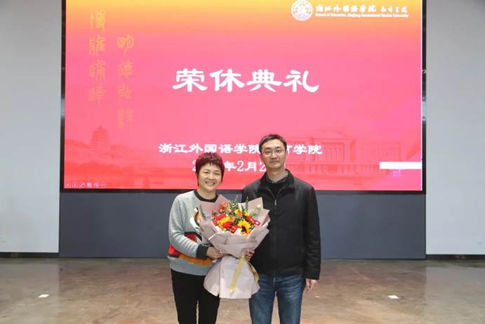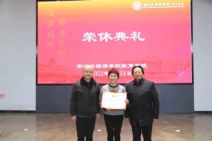 荣休典礼上,何伟强为蒋莉老师致荣休寄语,党总支书记姚旻为蒋莉老师送上鲜花,教育治理研究中心主任孙绵涛教授为她颁发英国上市公司365/教育治理研究中心特聘研究员聘书。真情的寄语、热情的拥抱、真诚的问候,传递着对蒋老师的感激之心和祝福之意,全场教师用热烈的掌声向蒋老师致以最诚挚的敬意和祝福。