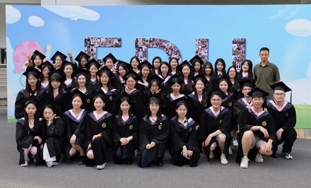 大礼堂里,座无虚席,精心准备的暖场视频,仪式感满满的现场布置,使今年的毕业典礼“排面十足”。学院还在线上平台进行实时图片直播,让远在外地无法前来观礼的员工及家长也能同步感受毕业氛围。