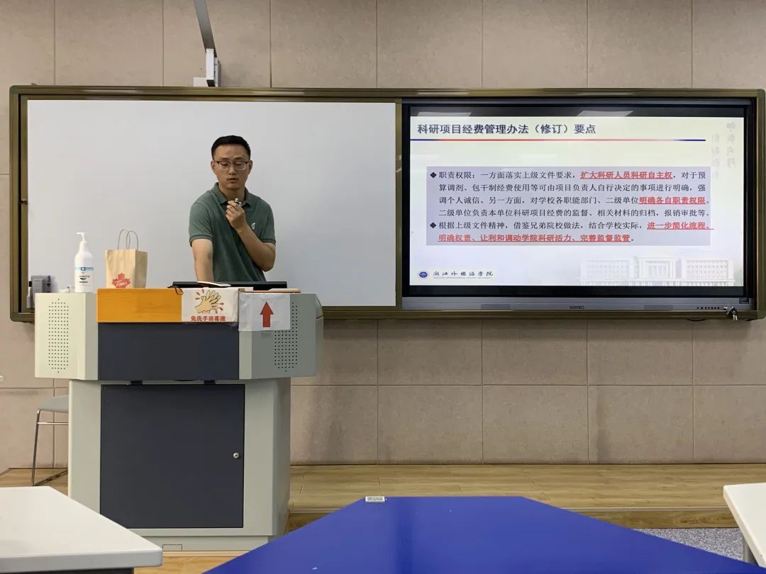 本次讲座崔庆围绕学校新出台的《高层次科研项目经费配套与计分办法(试行)》《省属高校基本科研业务费管理实施细则(修订)》等文件,对高层次科研项目培育与激励政策、横向科研项目管理政策、科研经费管理政策等进行了规范细致、深入浅出的专业解读。整个讲座过程既立足于规范的管理文本,又引入了大量生动形象的案例,让参与老师不但增进了对科研经费管理的理解,也提升了对科研项目申报的浓厚兴趣。