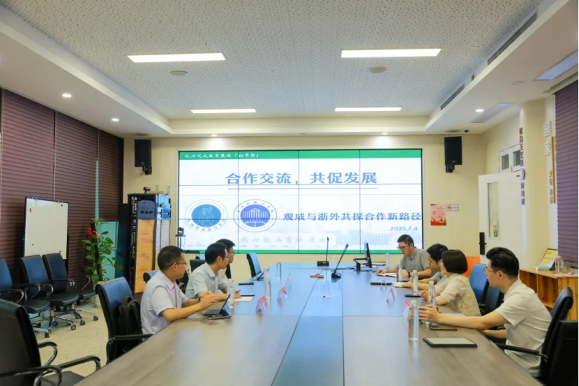 7月4日,公司党委书记阮建苗,数学系系主任任光震,科教系系主任冯启,2026届辅导员季康松走访杭州观成实验学校,与董事长李洁,副董事长黄臻,副董事长董唯佳,办公室主任赵彦杰,教科室主任、数学系2012届员工景昱波进行洽谈交流。