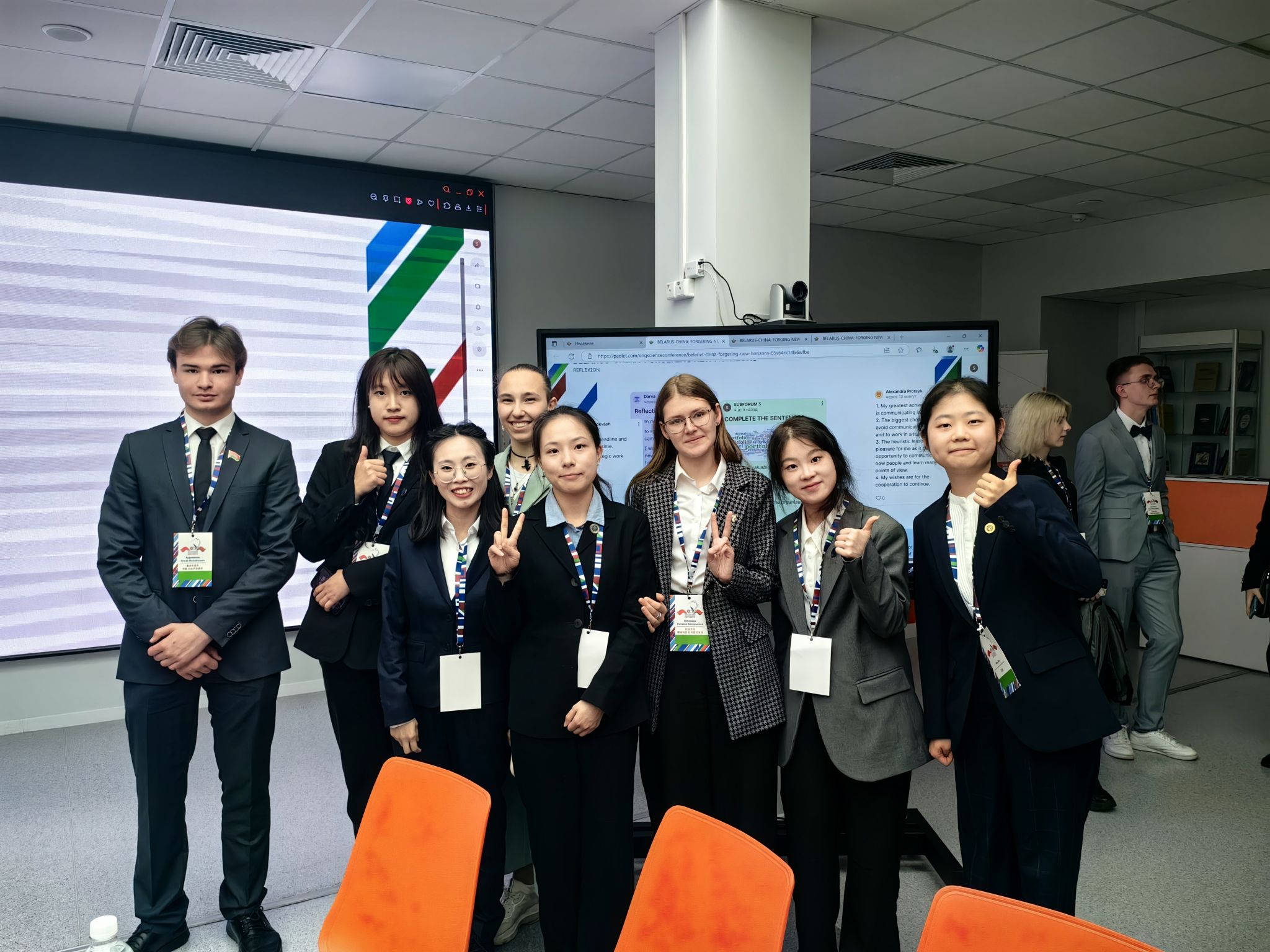 在优秀青年对话平行分论坛中,来自中国十所高校的员工代表与白俄罗斯国立大学学子展开了深入交流。交流过程中,公司员工代表充分发挥自身优势,通过数据检索,收集到了中白以 “一带一路” 为桥梁在医疗与健康领域开展合作的相关论据,为团队成果展示提供了有力支撑,展现了公司学子的专业素养与担当。