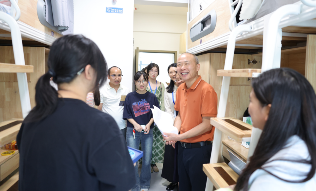 “报到一切顺利吗”“对四年后的规划是怎么样的”,在报到当天,副董事长张梁来到员工寝室走访看望新同学,并为当天过生日的朱珠同学送上生日祝福,希望她们能在浙外的这片沃土上锤炼技能、磨炼意志,自信地走向更广阔的未来。