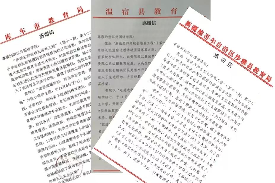 以下附库车市、沙雅县、温宿县教育局感谢信及相关报道: