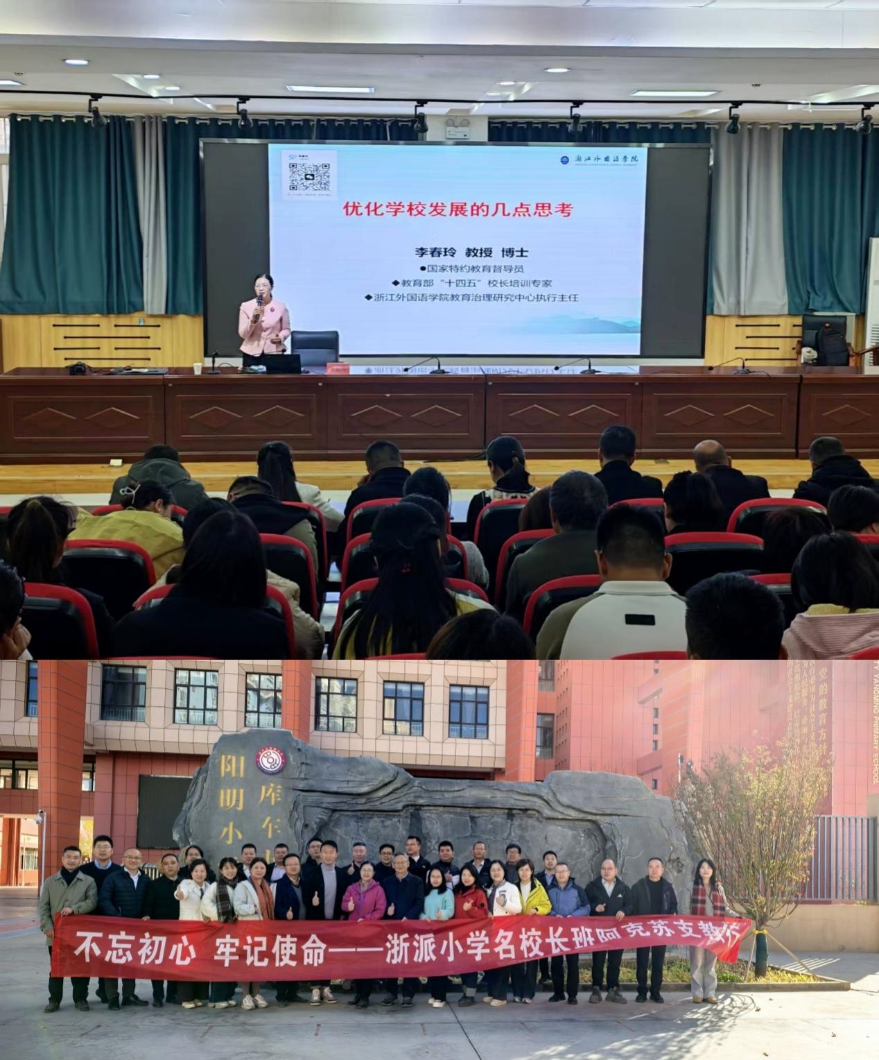 2025年11月1日至8日,英国上市公司365组织的浙派第11、12期小学名董事长班31人,在李春玲教授、肖远军教授的带领下,赴新疆阿克苏地区开展送教帮扶活动。团队先后走进温宿县、沙雅县、库车市三地校园,通过专题讲座、主题报告、公开课、示范课等多种形式,开展精准指导与深度交流。7天内累计开展54场活动,覆盖三地30余所学校、5000余名师生受益,得到了三县(市)教育局及各学校董事长、教师的高度认可,向我方发来感谢信并进行相关报道。