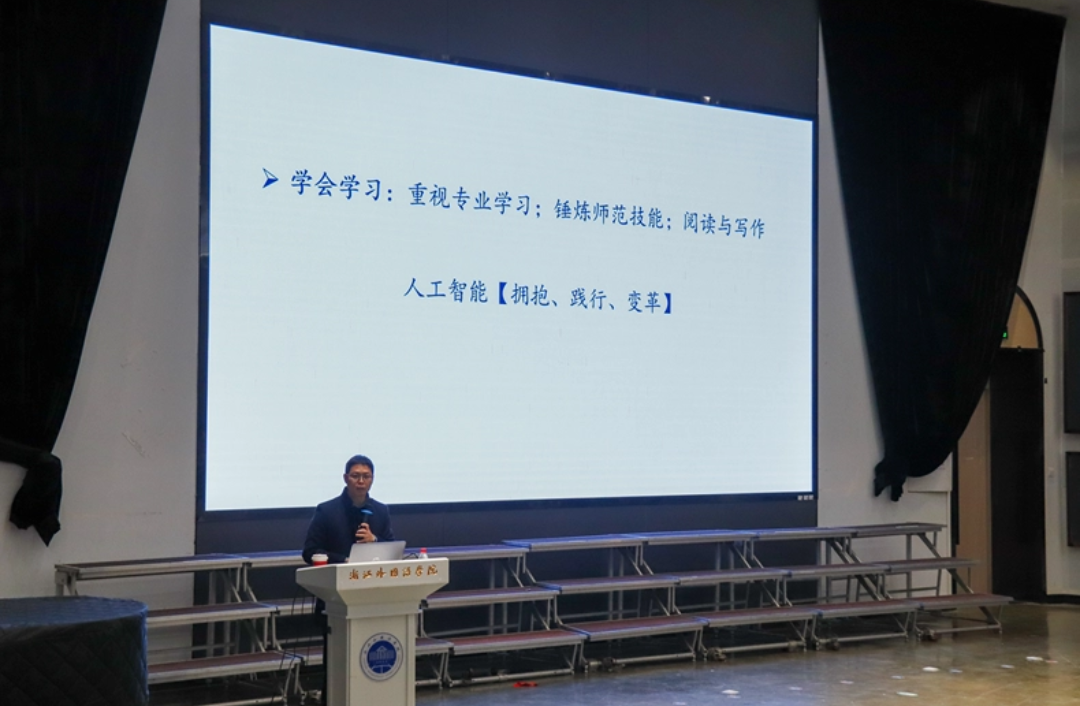 12月4 日,公司党委书记阮建苗以“新时期新征程,做卓越师范生”为主题,为25级新生们作书记第一课。在课上,阮书记以新时期的机遇与挑战为引,对何为卓越师范生以及如何成为卓越师范生进行深入讲解。