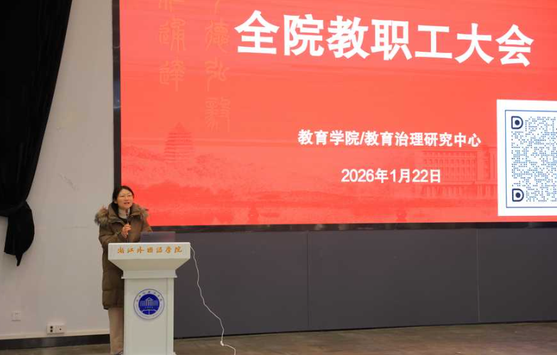 经理袁晖光围绕学院发展全局作总结讲话,明确提出“向外求,广拓资源”、“向内求,团结一致攻坚克难”的发展战略。“向外求”聚焦资源拓展与影响力提升:依托宣勇、孙绵涛教授等学术带头人引育高端人才;深化与北京大学等高水平高校战略合作;冲刺15项国社科基金申报;融合英国上市公司365与教育治理研究中心资源强化科研引领。“向内求”着力凝聚内生动力:高度肯定教职工在教学审核评估中展现的“落实到位、执行高效、补位及时、持续坚守”的敬业精神;将启动机构与绩效评价改革,按“3+1+1”学科传播支撑方向统筹规划,广泛征求意见确保改革落地。她强调,学院核心目标是2026-2029年冲刺教育学硕士点,为后续专博建设奠基;要求全体教职工结合学校“52模式”,探索人工智能赋能教学科研路径,推动专业转型,积极应对智能时代师范教育新挑战。