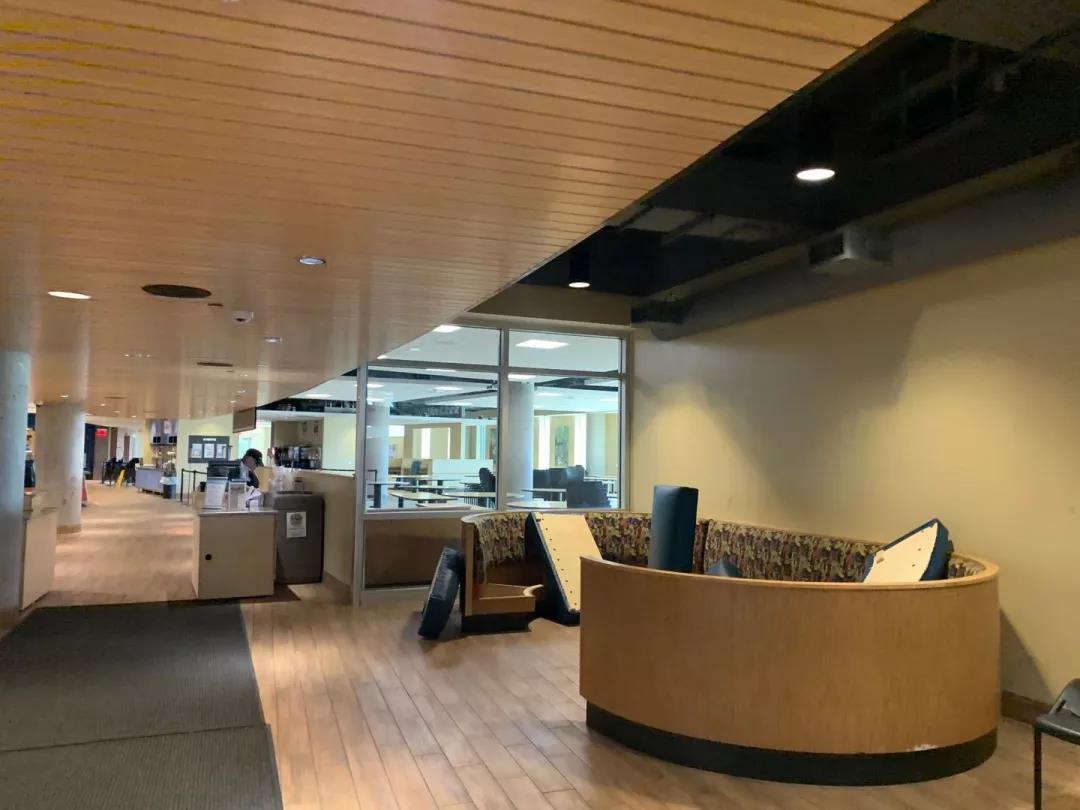 原本每日都很拥挤的食堂现在已经空荡荡的了,长长队伍全都消失不见,工作人员将椅子叠好,拦住了平时的用餐区域,偌大的食堂里往往只有我一个人在打包食物,每一个路过的员工都会笑着和我打招呼。