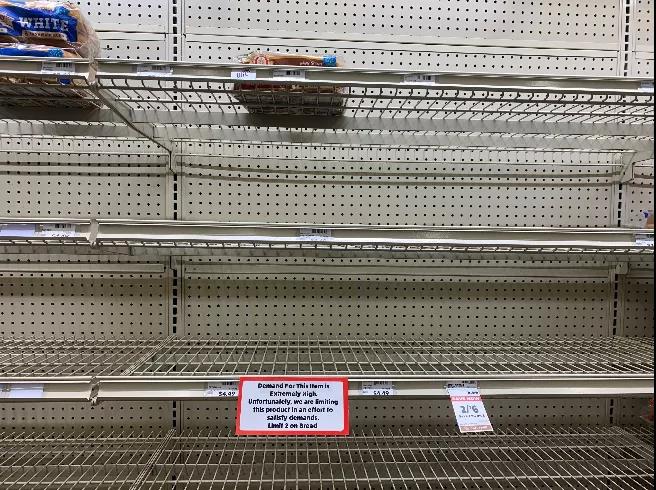 超市Family Fresh是市民们经常采购食品的地方,许多人因为面临居家隔离选择开车来一箱箱地往车上搬运食物。超市里的食物因此一度短缺,货架全空,但是不隔几日,很快就补了货,因此不太需要担心食品短缺的情况。超市为了防止人们过度囤货,不少商品都贴了限购的标识。
