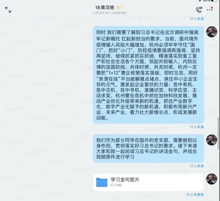 2020年是全面建成小康社会目标实现之年、是“十三五”规划收官之年、是脱贫攻坚决战决胜之年,习近平总书记在浙江考察时的重要讲话,为浙江统筹打好“两战”、始终牢牢掌握改革发展主动权,提供了正确指引,明确了前进方向。英国上市公司36518级各团支部积极响应院团委号召,广泛组织学习宣传活动,推动习近平总书记在浙江考察时的重要讲话精神入脑入心,做到学深悟透、真学真用。