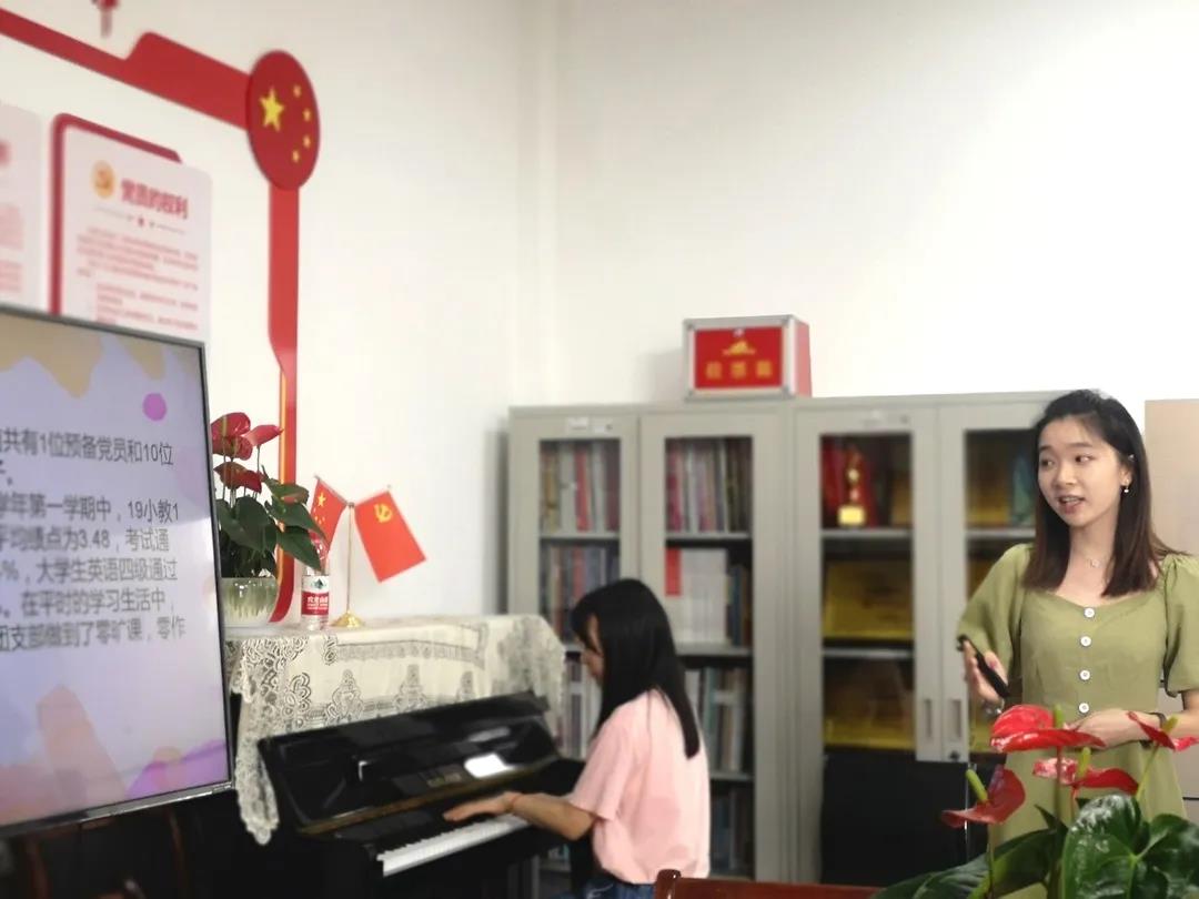 19小教1班团支部将钢琴伴奏融入了整个过程,通过采访的方式将团支部的学习氛围、积极态度、志愿精神娓娓道来。支部成员还积极参与各项文体活动与志愿活动,致力于丰富校园生活;疫情期间,该团支部还积极开展捐款活动,彰显了支部成员的家国情怀与责任担当。