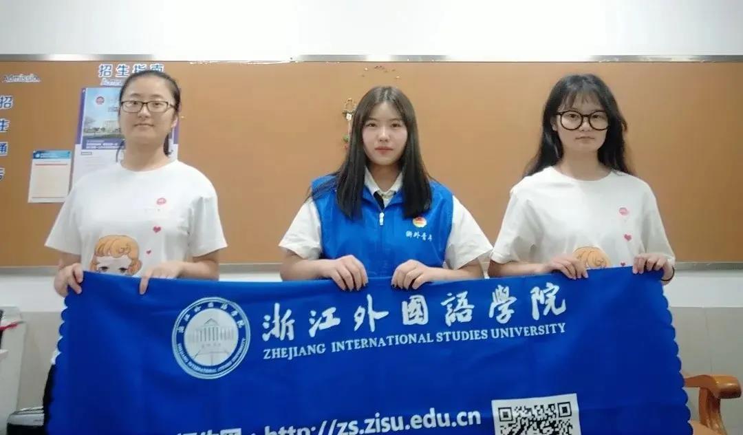 做好准备后,小队成员到达东阳市巍山高级中学,布置好一切,面向高三学弟学妹们的宣传正式开始。当员工们走来的时候,小队成员看到的是一张张青春的面庞和那一颗颗跳动的年轻心脏。成员们把折页递给员工时,询问他们将来报考高校和专业的意向,多数的学弟学妹已经有了想法与计划,有的想学语言,有的想学师范,有的学妹还要了小队成员的微信并且坚定地说让小队成员在浙外等着她们。