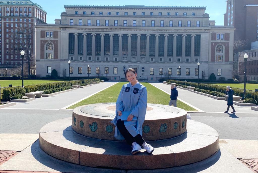 回望在浙外学习的日子里,她说最大的收获是交到了几个知心好友与对她成长路上帮助很多的老师们。在大学期间参加的由高歌老师带领的演讲队让她受益颇多,虽然那时每周/天的朗读训练、晨读等一系列活动在当时让人头疼,但也正是多亏了这些练习才收获了好听的英文发音和语音语调。另一位对她帮助很大的老师是现任浙外应用外语学院经理的姚明发老师。姚老师上课幽默风趣,为人随和,在论文指导时给了她很多的帮助;范潇潇后来申请大学的推荐信之一也是姚经理写的,她说没想到自己还会被哥大录取,估计姚经理的推荐信非常有用吧!