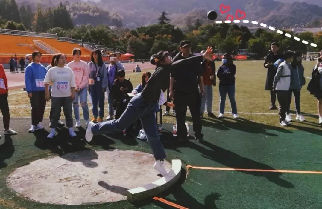 汪恬梦:因为去年参加过铅球比赛,也拿到了第六名的好成绩,所以今年就想要往前冲一冲,就算不能进前五至少把第六名的成绩保住,所以我心里告诉自己要用力,预赛的时候我可能因为太紧张了不是很好,所以当时保住了第八我也是很庆幸,之后就因为能进入决赛内心充满斗志,感觉力量满满,成绩也是一次比一次好,最终保住了第六名,为教院挣得了名次我非常开心!