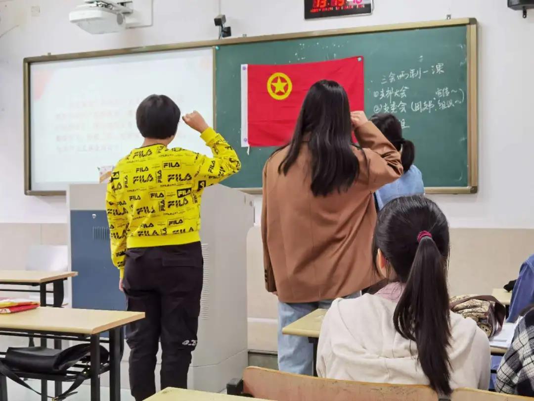 会上,还进行了2020年新团员入团仪式。在组织部负责人的领誓下,新团员符燕玲、文滢许下了庄严誓言,杜颖为他们佩戴团徽、送上祝福。新团员们表示,会永远牢记青春使命,继承和发扬中国共青团的优良传统,努力学习团员精神,展现团员风采。新团员学习入团誓词,老团员重温入团誓词,不仅增强了团员的进取意识,而且加强了学校对共青团队伍的建设。