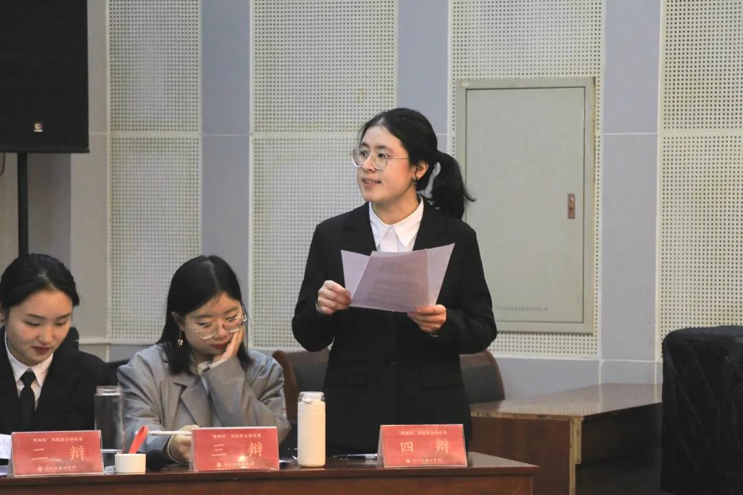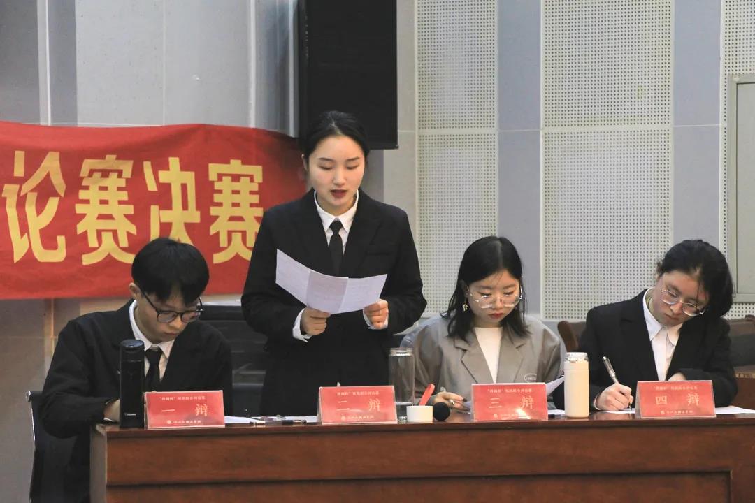 第二场冠亚军争夺战,则围绕“解决校园霸凌更依靠法律手段还是教育手段”展开。公司代表队作为反方,在简短的自我介绍后,从不同角度层层陈述己方观点,坚定捍卫己方立场。在最后的自由辩论环节,辩论进入白热化阶段,双方辩手更是针锋相对,陈词巧妙,真可谓是一场思维与逻辑的较量!