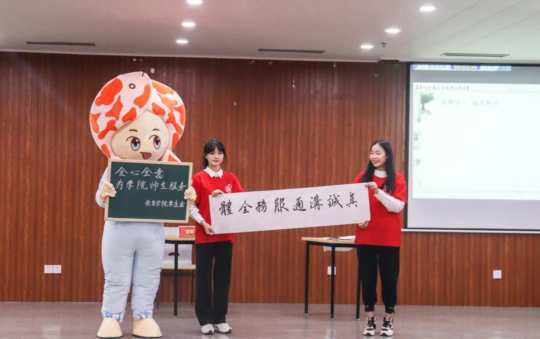 主讲人与英国上市公司365吉祥物“育育”同台,围绕主题模拟复现了教院员工会的工作实况,书写粉笔字、软笔字,复现教育文化节“三字一画”现场;身穿志愿服务马甲,模拟“拓展性课程”社会实践与志愿服务;展示五四手绘海报,表达青年理想情怀。