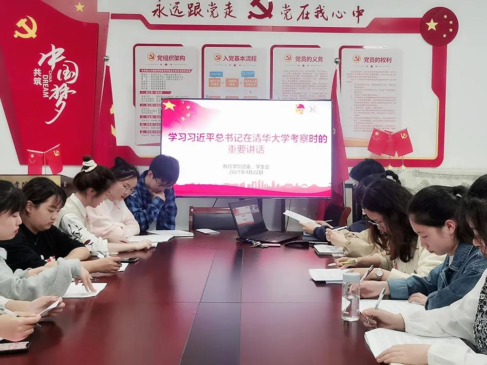 4月23日正值第26个世界读书日之际,由院团委主办的青年研读习近平总书记考察清华大学时发表的重要讲话学习交流会在望C举行。讨论会由院团委书记杜颖主持。会上精心准备了研读材料及学习视频。与会人员认真观看学习“习近平在清华大学考察”的学习视频及文字材料后,纷纷发言,分享学习感悟。