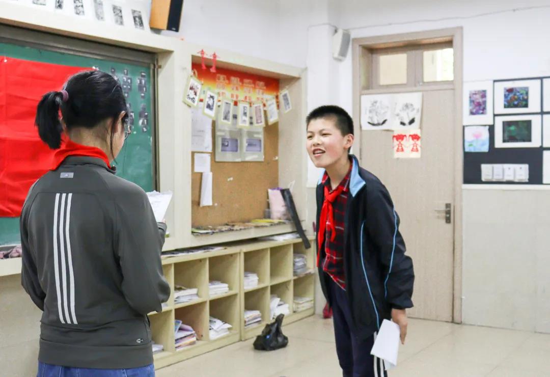 近日,杭州求是(和家园)小学红领巾主持人教室中,有这样一段情景剧正在上演:抗日战争时期,日军为套取军事情报,对一个名叫李爱民的13岁男孩威逼利诱、严刑拷打。而李爱民宁死不屈,直至牺牲也仍未向日军透露半点消息。来自红旗队的童一鸣同学扮演了李爱民这个角色,在扮演过程中,他一直不假辞色、声音洪亮,将这位忠贞不屈的小英雄演绎得淋漓尽致,博得了台下十几位小朋友的热烈掌声。