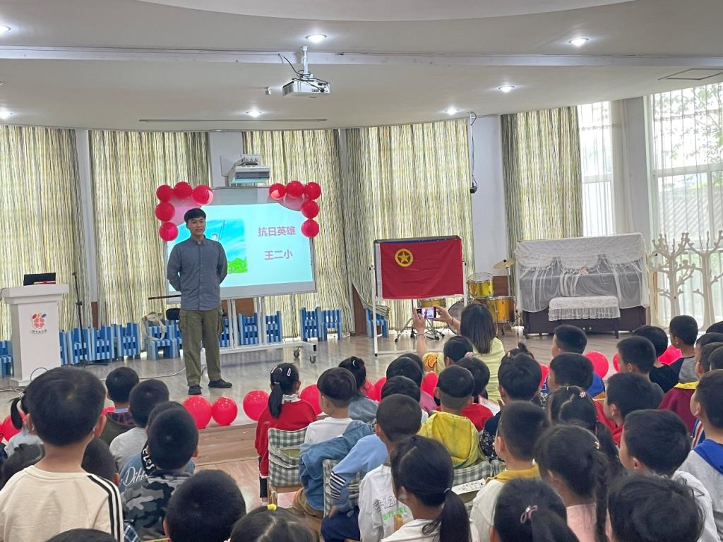 员工志愿者随后结合绘本用抗日英雄王二小的歌曲和故事给幼儿带去了一堂生动的红色课堂,孩子们通过对比感受到了今日幸福生活的来之不易。
