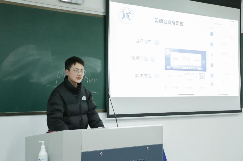新媒体部负责人郑扬从注册流程、公众号定位、公众号设计排版三方面详细阐述公众号运营及推送制作方法,使成员们加深对公众号运营的理解,掌握推送制作的技巧;负责人董科恋通过实际操作,提醒成员们注意色彩搭配、照片素材选择,并展示插件使用与H5制作过程。