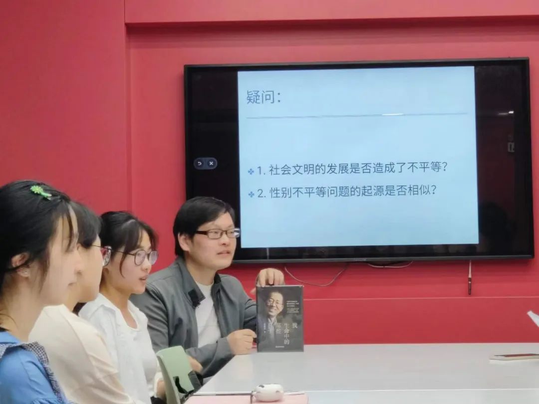 三位同学的发言结束后,校图管会外联部部长黄佩锶针对《好好照顾我的花》一书中,少女罗兰通过阅读变成巨人这一情节分享了自己的思考,她从中感受到了阅读的高度,阅读使人不断进步,只有不断努力才能更加接近人生理想。陈慧楠同学也对这一情节发表了自己的看法,她认为罗拉之所以在看完最上层的书才变成巨人恰恰是因为她在阅读中充实自己,成为了精神上的巨人。此外,严心雨、李双、陈适瑾等同学还就《人类不平等起源》展开了有关男女平等的讨论。