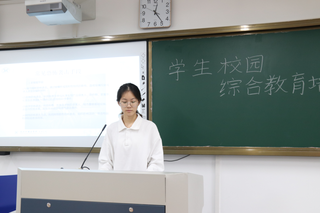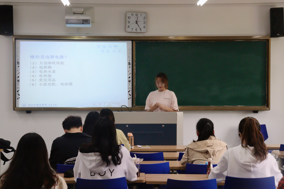 培训围绕消防、交通、反诈、反恐、反暴、禁毒六个方面,系统阐述校园安全的现实意义并提供有效可行的解决方案。通过观看相关安全教育警示片,对各类典型安全事故案例进行剖析,结合同学们在日常生活环境中可能存在的安全隐患进行详细讲解,普及校园安全知识,进一步提升同学们对校园安全的重视程度,提升安全意识。其中,对于同学最关心的寝室违禁物品类别进行了进一步详细说明,使同学们深刻认识到寝室违禁物品对安全的危害。