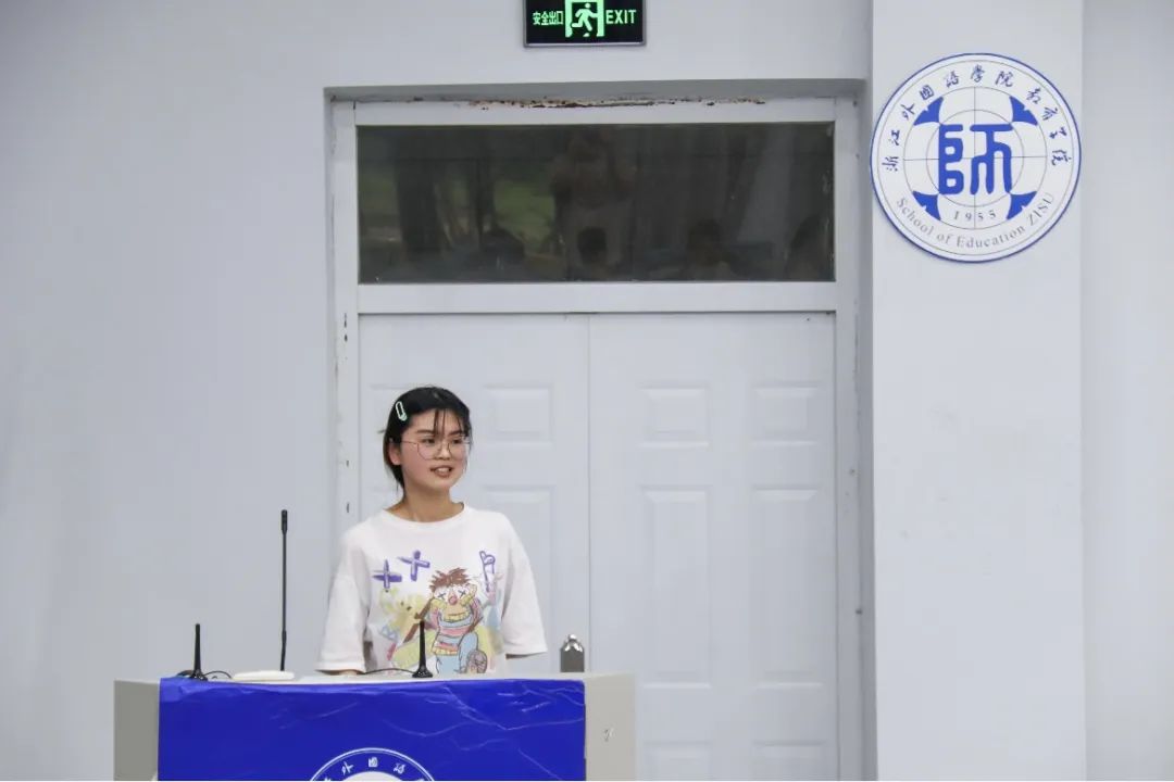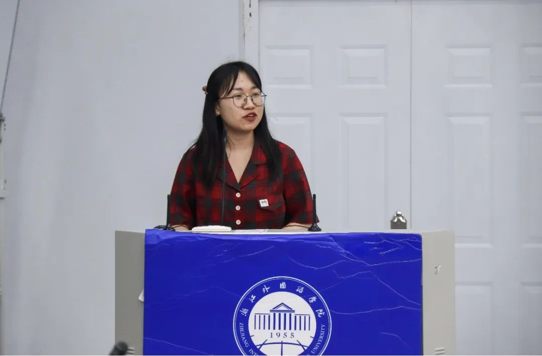 对外联络部负责人胡雨怡、周子涵从“学期工作、工作感想”两方面入手,介绍了对外联络部本学期举办的三字一画、21天读书打卡分享等活动。负责人胡雨怡向大家讲述了自己进入团学的初衷和在团学工作两年来的心路历程以及在工作中得到的收获,并表达了对每一位部门成员以及学姐们最真挚的感谢与祝福。负责人周子涵通过回忆工作中的点滴细节,同样表达了自己对团学的感谢和不舍。