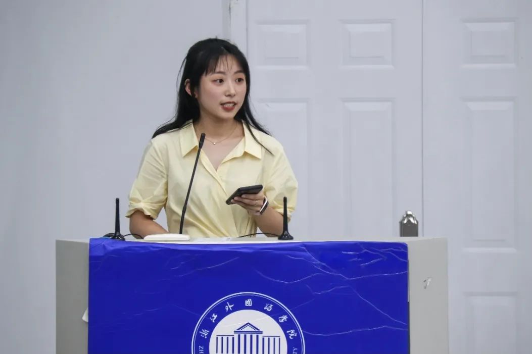 文体部负责人项佳莹介绍了文体部的基本职能以及本学期部门组织负责的活动中学院取得的各项优异成绩。同时,她表达了对部门全体成员以及组织负责人的感谢,部门的每项优异成绩都离不开每一位部员的努力和付出,相信在未来的工作中,文体部也将越来越好,取得更多优异成果。