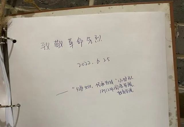 当看到革命烈士笔迹制成的石壁时,成员们思绪翻涌、感慨万千,惊叹于烈士热忱的爱国主义精神与伟大的奉献精神:今天我们过上的幸福生活,离不开先辈们的努力与付出;深受先辈精神影响,作为新时代新青年的我们应当尽己所能,为实现伟大复兴的中国梦贡献自己的一份力量。