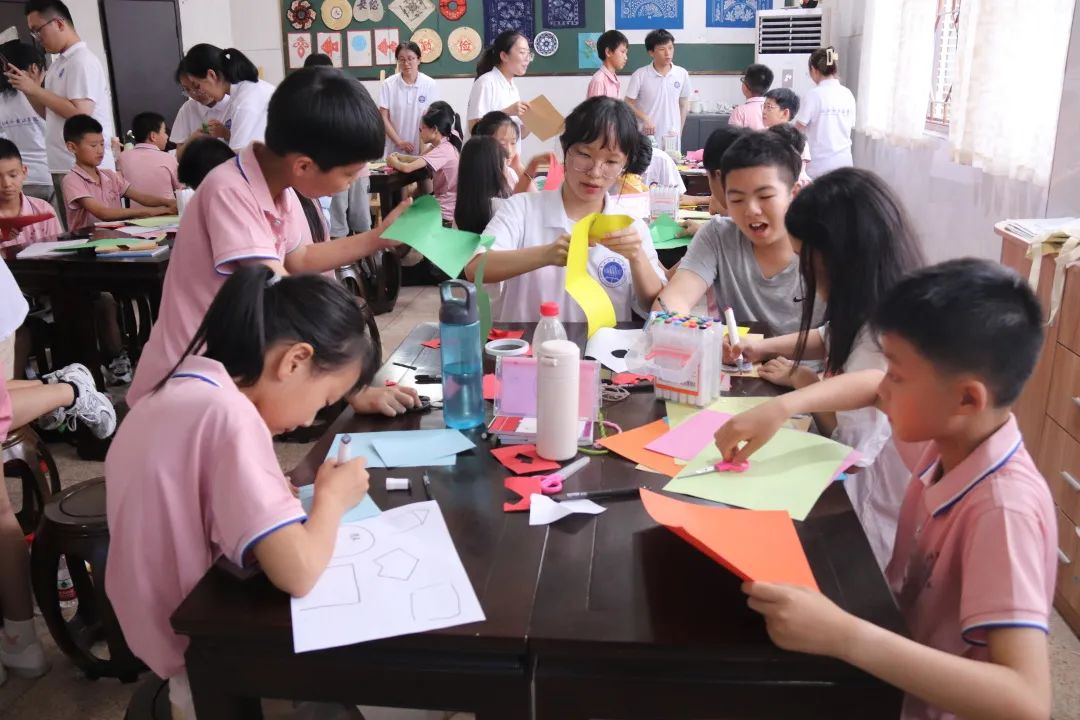 本次暑期托管传统文化公益夏令营设置了浦江传统文化体验课程、中华传统文化认知课程、红色拓展性课程、农业基地实践等特色体验课程。课上,浦江非遗传承人楼基洪以提问的方式与员工交流浦江方言,娓娓道出浦江剪纸的历史文化内涵;引领员工构建文化自信,自豪喊出:“我是浦江人!”