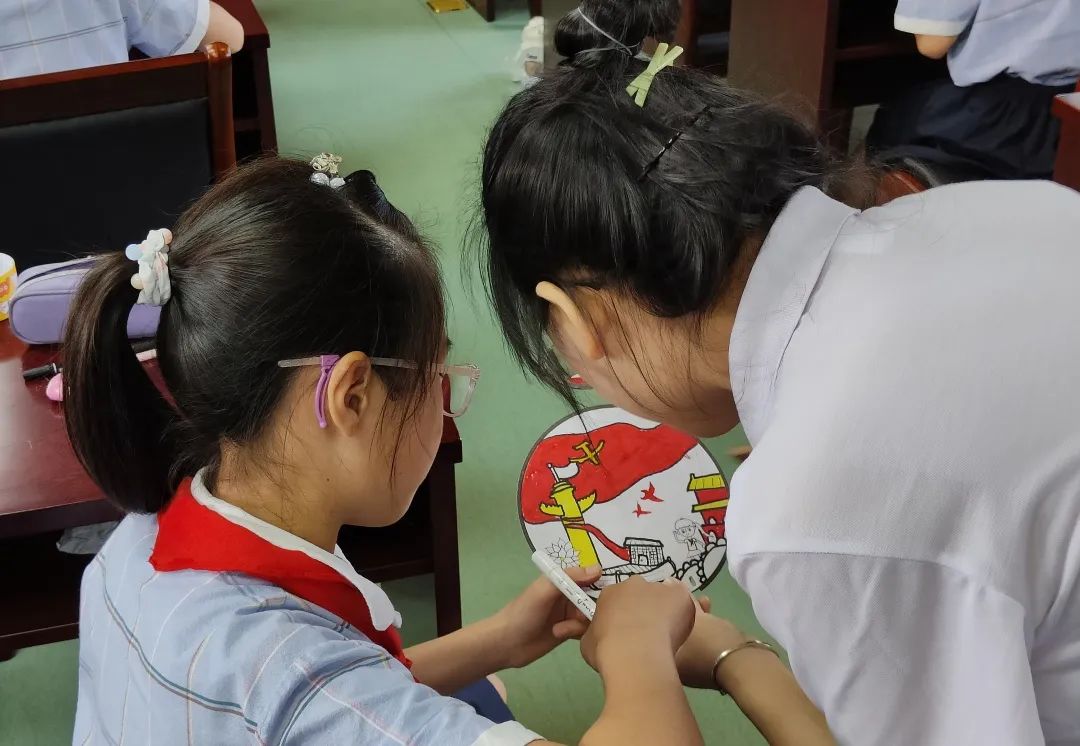 以党史为主题,以扇面为载体,队员们带领同学们绘制自己心中“意义非凡的扇子”,化身“小小红色宣讲员”,细致描绘自己对党和国家的祝福与赞美;以第19届杭州亚运会为切入口,作为东道主的队员们发挥自身专业优势,展现亚洲不同国家地区的文化魅力,放眼世界未来,拓宽国际视野;以祝贺党的二十大顺利召开为授课背景,队员们带领同学们编织创意的“永不凋谢的花”。东关小学三年级三班的小朋友激动地说:“一束束美丽的花朵,就是我对党和祖国的爱呀!”