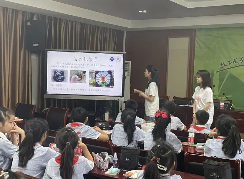 《学党史 绘扇面》《献支花儿给党的二十大》《“小小扎染师”——植物拓印手工扎染》《江南油纸伞》《心心相印 多彩文化》是实践团队为本次的线上送教活动悉心准备的五门拓展性课程。